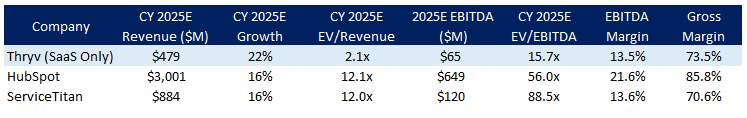 THRY sticks out like a sore thumb. Both comps are 10x more expensive. ServiceTitan’s financials are actually inferior to Thryv’s on all metrics.
